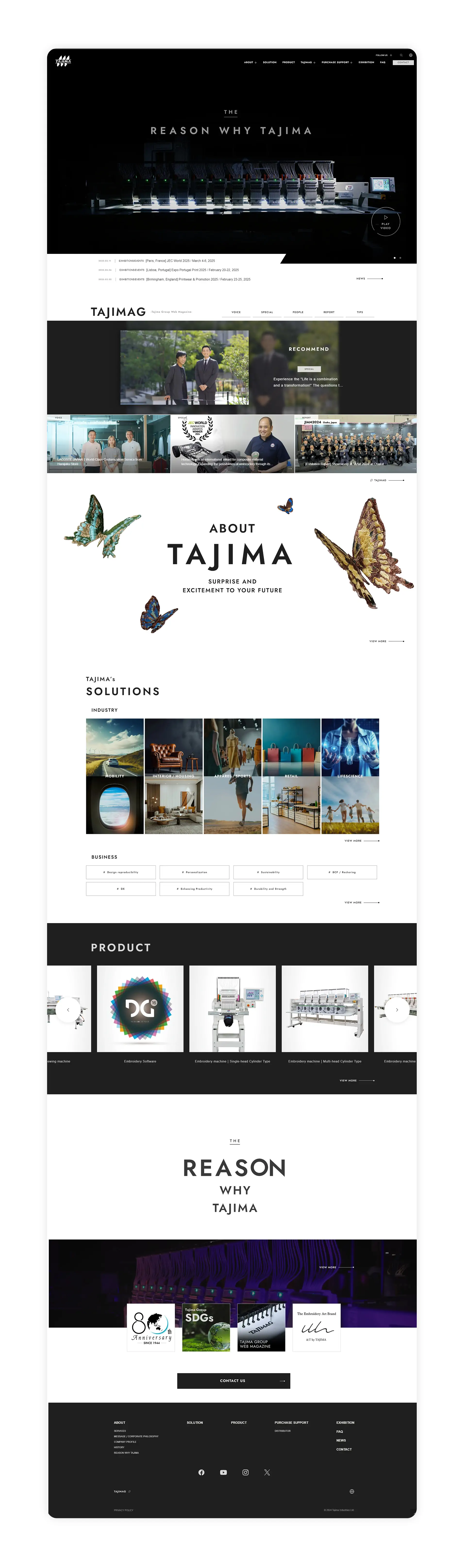田岛成立于1944年,一直致力于电脑绣花机的研发和生产,拥有世界先进的生产加工设备和多项行业领先的绣花技术,是现代刺绣业的创始者和引领者。田岛刺绣机械有限公司成立于1984年,获日本田岛委任为「Tajima田岛」刺绣机这中港澳总代理。田岛作为现代刺绣业的创始者我引领者,秉承近80年的经验和技术,为客户提供「全方位一站式刺绣解决方案」。